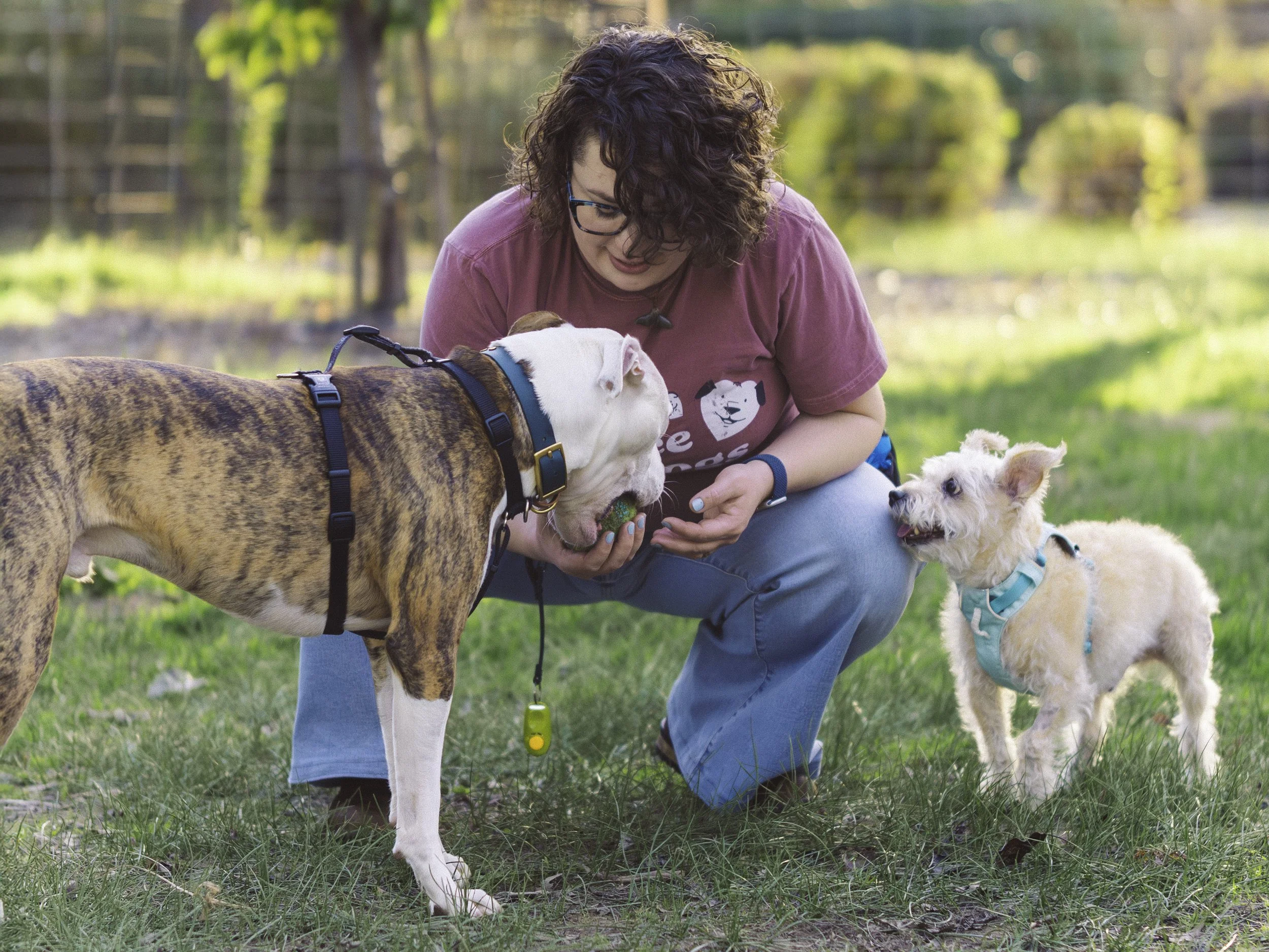 We can build foundational or more advanced behaviors together all while giving your dog choice and freedom and incorporating pattern games for fun, building a stronger bond and meeting everyone’s needs.